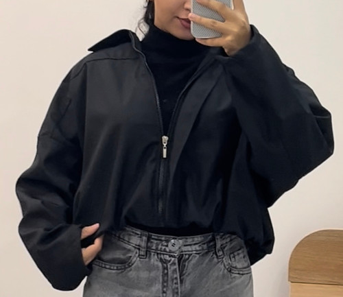 کراپ آستین چرم دخترانه جنس سویئت و چرم  قدبالا باسن سایز ۳۸تا ۴۶ فری سایز