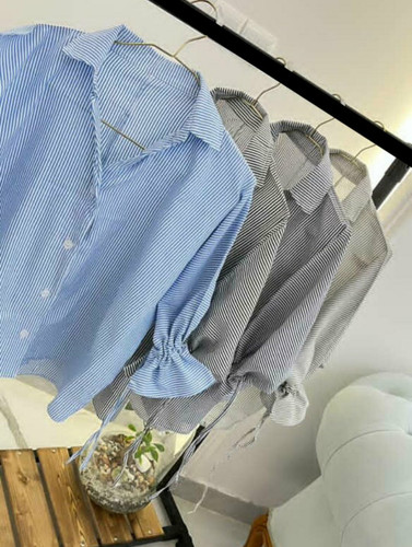 شومیز زنانه راه‌راه، جنس پوپلین نخی با ایست عالی و بدون چروک اذیت‌کننده. آستین‌ها حالت چین‌کش،سایز36تت48🤍